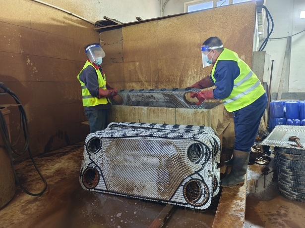 据了解,公司今年需要清洗的换热器有220台,平均每台换热器有100余片换热片,为保证清洗质量,设备公司制定了严格的清洗流程和验收标准,确认表面无残留污垢、无划痕损伤后,才允许装车返回热力站。为了确保清洗进度,工作人员每天清晨7点就到达工作岗位投入到拆卸、清洗和安装工作中,确保按计划完成清洗任务。