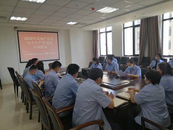 全国第21个"安全生产月"到来之际,房地产公司于6月1日下午,在11楼会议室举行了以"遵守安全生产法 当好第一责任人"为主题的"安全生产月"启动仪式。公司各处室负责人及工程处全体人员参加了本次活动。