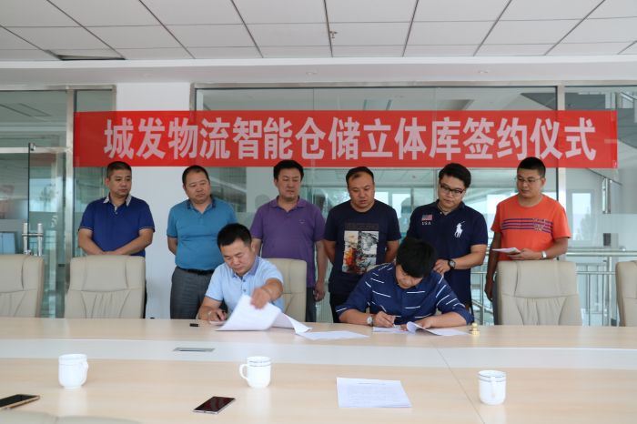 2017年6月8日下午,大进商贸公司(金龙鱼代理)、宝通资讯公司与城发物流公司签约,入驻恼包园区智能仓储库。同时,园区商户张裕红酒公司也要将其货物从平面库移入智能仓储库。三家企业入驻后,恼包园区智能仓储库共计将实现3500托的托盘租赁量。