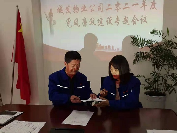 4月14日下午,城发物业公司组织全体党员干部召开2021年度党风廉政建设专题会议。
