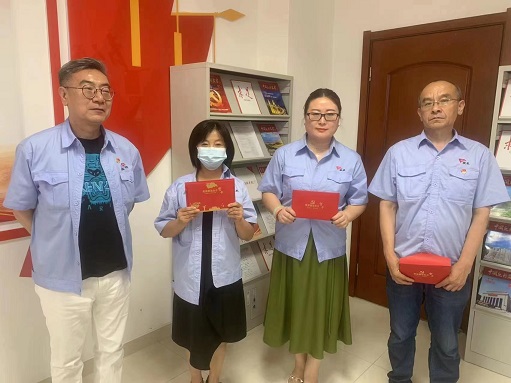 胡日查同志宣读了集团公司党委审批通过齐乐、张学敏两位同志成为中国共产党预备党员,庄永飞、刘涛两位同志按期转为中国共产党正式党员相关事宜,并向齐乐、张学敏两同志表示了衷心祝贺,要求她们在今后的学习和工作中不断用实际行动践行初心使命,以党员的标准严格要求自己,时刻保持共产党员的良好形象、先进本色。随后,胡日查同志带领齐乐、张学敏两位同志和其他全体党员同志高举右手,庄严宣誓,再一次重温入党誓词,重忆入党初心。齐乐、张学敏两位同志表示,作为新时代的青年,将牢记党的宗旨,牢记入党初心和使命,脚踏实地做好本职工作,以饱满的热情和昂扬的斗志投入到工作中去。