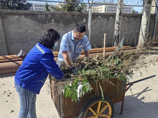 6月4日上午,桥靠分公司党总支组织党员、预备党员、发展对象、积极分子对厂区院内杂草进行清除,以实际行动美化厂区环境,践行绿色发展理念,消除火灾隐患。